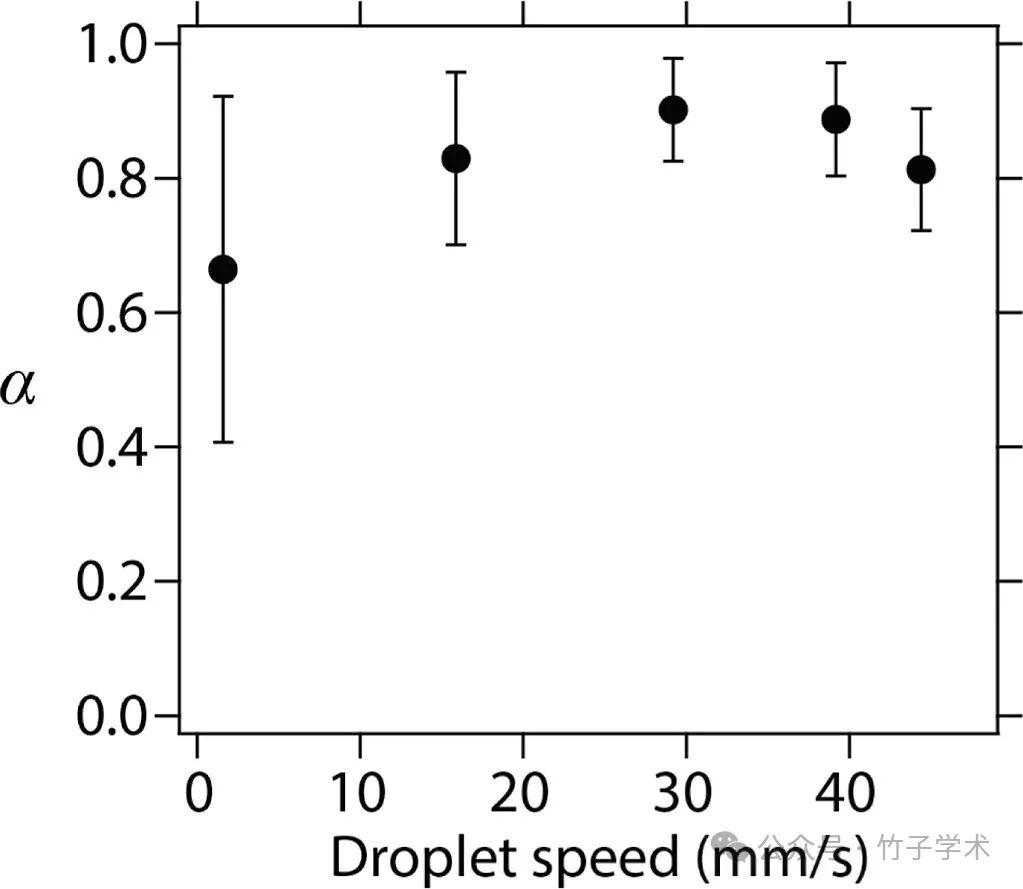 圖7是計算出的比例α與液滴速度之間的關系。