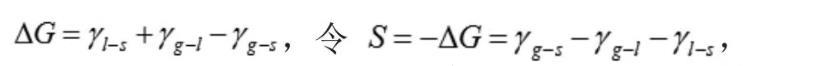 其中,ΔG為Gibbs自由能的變化值,S為鋪展系數,γg-s為氣-固界面張力,γg-l為氣-液界面張力,γl-s為液-固界面張力。如果若S≥0,說明液體可以在固體表面自動鋪展。