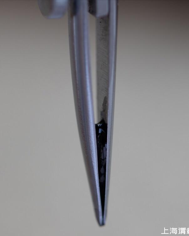 比較簡單的方法是拿小刀片調(diào)整中縫的開縫大小,和筆尖與筆舌間的距離,使更多的墨水能夠到達(dá)銥粒這邊,靠重力也能克服最后內(nèi)凹的這點(diǎn)距離。這一步驟俗稱“刀尖”。只要不刮花金屬鍍層,基本上整個過程還是可逆的,就算一次下來效果不滿意也有進(jìn)一步調(diào)整的余地。比如刀得太寬了,還能捏一捏再讓他緊一點(diǎn)。注意這里我們并不是要把中縫一味地開大,而是調(diào)整到合適的寬度,因?yàn)樘珜捘€是會留在中縫里,太窄又無法順利地從筆舌那邊引過來。