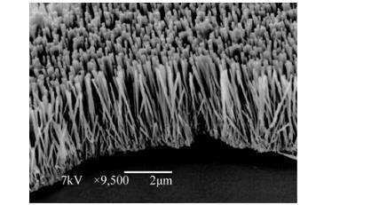 納米ZnO是一種重要的光催化材料,具有成本低廉、生物相容性較好和電子傳遞特性較高的優點,因此在太陽能電池、傳感器、光電器件等方面都有廣泛應用。本實驗采用水熱合成法定向生長ZnO納米線并用原子力顯微鏡(AFM)和掃描電鏡(SEM)對其進行了表征,結果如圖2和圖3所示。