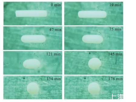 圖3是實驗所得液滴各時刻形態圖,用游標卡尺測量實驗結束后的PS液滴半徑R0為0.895 mm。