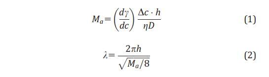 為了量化溶質(zhì) Marangoni 效應(yīng),25,26,30,31 我們估計(jì) 馬蘭戈尼數(shù) (Ma) 和馬蘭戈尼波長(zhǎng) (k).32