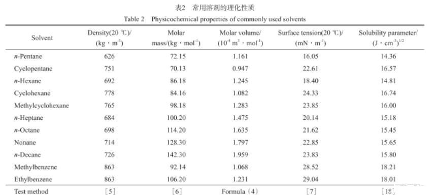 常用溶劑的理化性質見表2。