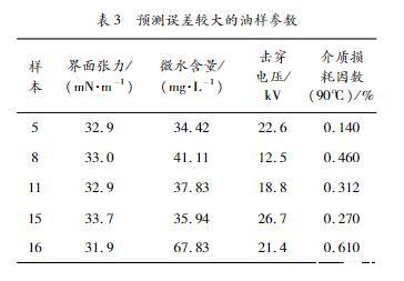 對誤差較大的5組變壓器油樣都發(fā)生了劣化,導致預測誤差相對較大。