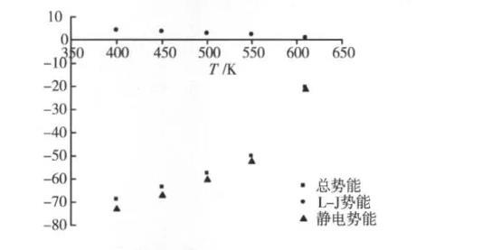 圖8液相主體區域的勢能隨溫度的變化趨勢