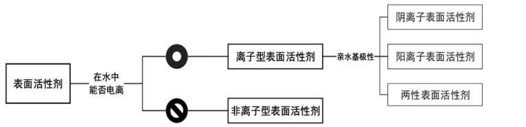 表面活性劑的分類如圖1所示。礦井下的煤塵一般是帶負電荷,若選用陽離子表面活性劑配制溶液,那么帶負電荷的煤塵在與之接觸時,會與帶正電荷的親水性基團結合,造成疏水基分布在溶液表面現象,促使煤塵不容易被溶液潤濕,故不考慮陽離子活性添加劑。結合表面活性劑的理化性質,本文選取了六種常用的表面活性劑來進行實驗,材料均采購于萬化(廣州)供應鏈服務有限公司。