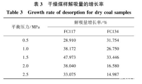 3.3含水煤樣解吸特征的結(jié)果與分析
