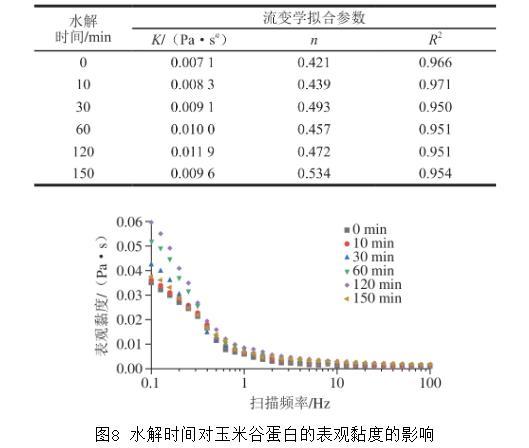 圖8水解時(shí)間對(duì)玉米谷蛋白的表觀黏度的影響