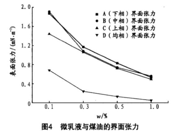 對上述微乳液進(jìn)行了表/界面張力的測試,結(jié)果見圖3。