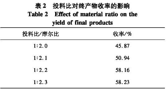 固定反應溫度90℃,反應時間14 h,考察投料比對終產物GAC-312收率的影響,結果見表2。