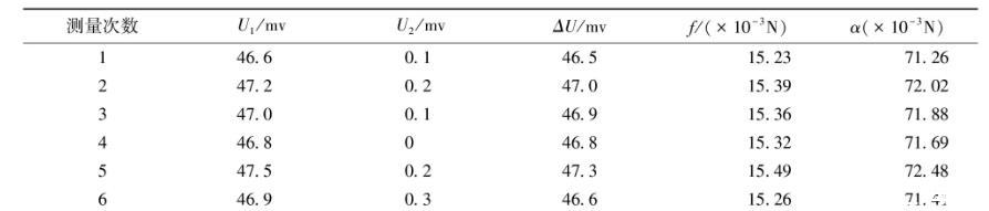 用原有的金屬吊環(huán)測量純水在25℃時的液體表面張力系數(shù)的數(shù)據(jù)見表2。
