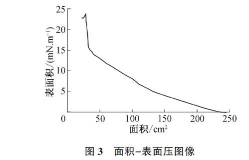 用LB膜分析儀研究了膠原蛋白肽LB膜的表面壓-面積曲線,如圖3所示。當膠原蛋白肽氯仿溶液被滴加在亞相表面上,隨著氯仿在亞相表面的鋪散,膠原蛋白肽呈分散狀態,分子間距較遠,單分子所占面積大,呈現出LB膜制備過程中氣相狀態特點,表面壓幾乎為零。在氯仿溶劑揮發干凈后,隨著滑障的壓縮膠原蛋白肽分子互相靠近,單分子所占面積變小,當分子間距離縮短至液相狀態,可以檢測到表面壓開始緩緩上升。繼續壓縮,亞相表面上的膠原蛋白分子由液態向固態轉變,分子間距快速減小,表面壓快速上升,此時形成固相狀態的單分子膜,分子之間排列緊密。繼續壓縮,可以使分子間距到達最小值,表面壓升至最高,即為其崩潰壓力,再壓縮則形成的單分子層會瞬間崩潰。經圖3結果中可以看出,膠原蛋白肽的成膜過程符合標準朗格繆爾膜成膜過程的相關特性,其崩潰壓力為23.8 mN/m,維持表面壓為23 mN/m,可以得到穩定的膠原蛋白肽單分子層,實現LB膜的固相轉移,制備膠原蛋白肽覆層羥基磷灰石材料。