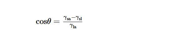 在由顆粒穩定的泡沫中,氣泡表面存在不可逆吸附的顆粒層,可以起到抵抗聚結和粗化的物理屏障作用。顆粒必須首先吸附到表面上才能實現穩定泡沫的功能。通常認為,顆粒在空氣/液體表面的吸附與顆粒的潤濕性相關,該潤濕性通過顆粒與空氣/液體界面的接觸角來量化,可由楊氏方程計算得到: