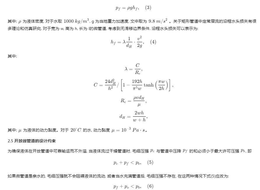 如果微管道是親水的,毛細(xì)壓強(qiáng)就不會(huì)阻礙液體的流動(dòng),或者當(dāng)水充滿管道后,毛細(xì)壓強(qiáng)不存在,在這兩種情況下式(5)應(yīng)改為: