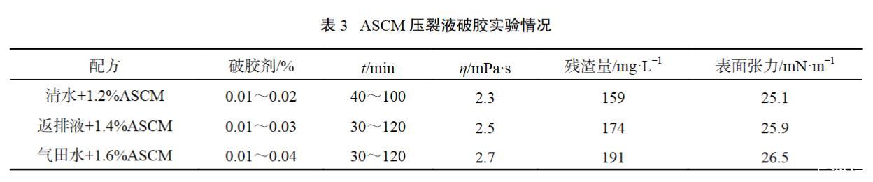 表3 ASCM壓裂液破膠實(shí)驗(yàn)情況