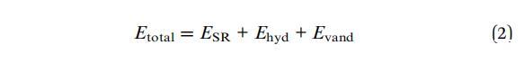 兩種平衡力在組裝的形成中起著重要作用:由兩種粒子之間的界面力控制的疏水相互作用,以及納米粘土團簇和系統疏水環境之間的空間斥力。因此,復雜核-殼(粘土小體)組裝的總能量由以下三個貢獻的總和給出:相鄰納米粘土團簇之間的空間斥力(ESR)、9疏水力(Ehyd)、9和范德華力(Evand):34