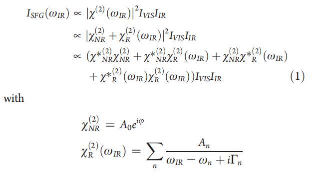 磁化率包含一個(gè)非共振項(xiàng),振幅為A0,相位相對(duì)于共振項(xiàng)j,以及一個(gè)共振項(xiàng)。后者通過(guò)共振頻率ωn、線寬2Γn和振幅An來(lái)描述n個(gè)振動(dòng)共振。