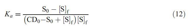 其中,CD/S、[S]f、[CD]f、CD0和S0分別為包合物、游離表面活性劑、游離CD、總CD和總表面活性劑濃度。通過組合和重新排列等式。9-11,我們得到了以下關(guān)系式: