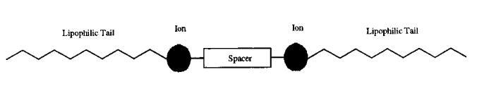 兩個末端烴尾可以是短的,也可以是長的;兩個極性頭基可以是陽離子、陰離子或非離子;間隔物可以是短的或長的、柔性的或剛性的、極性的或非極性的(參見參考文獻1中的方案1)。8-12雙子座不需要圍繞間隔物的中心對稱布置。13,14顯然,豐富的化合物存在于合成可能性的范圍內(nèi)。
