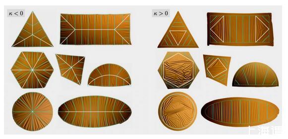 在這項研究中,團隊把重點放在具有正曲率和負曲率的彎曲外殼,重點分析材料的物理形狀和曲率對褶皺的模式可能產生多大的影響。