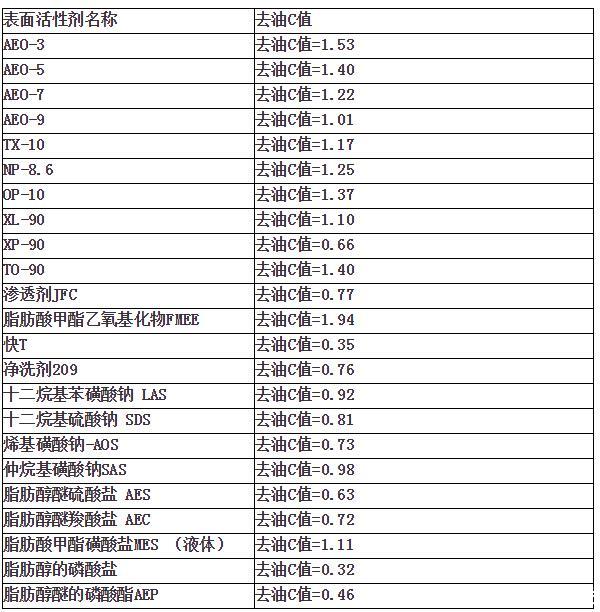 目前市場(chǎng)上常見的各種表面活性劑,包括非離子、陰離子最常用兩大類的耐堿、凈洗、除油和除蠟性能的比較。