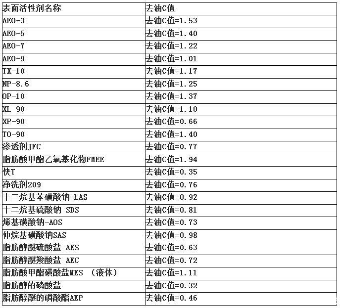 各種表面活性劑除油性能對比