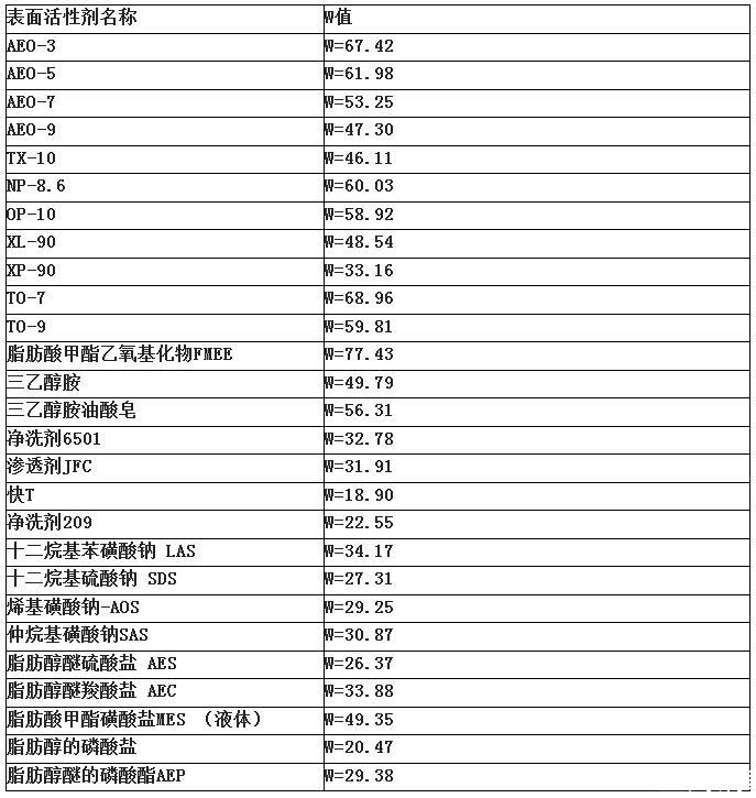 表面活性劑凈洗性能一覽表