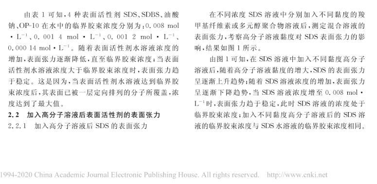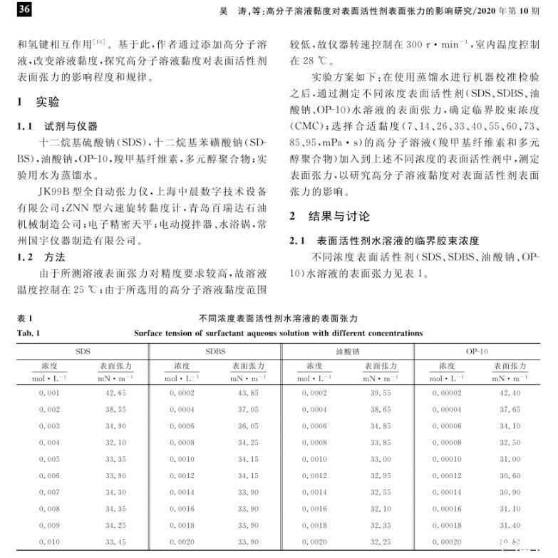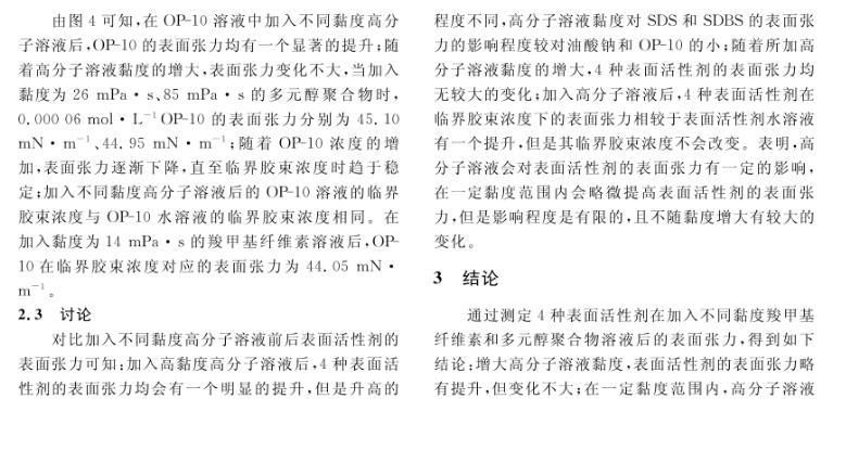 高分子溶液黏度對表面活性劑表面張力的影響研究