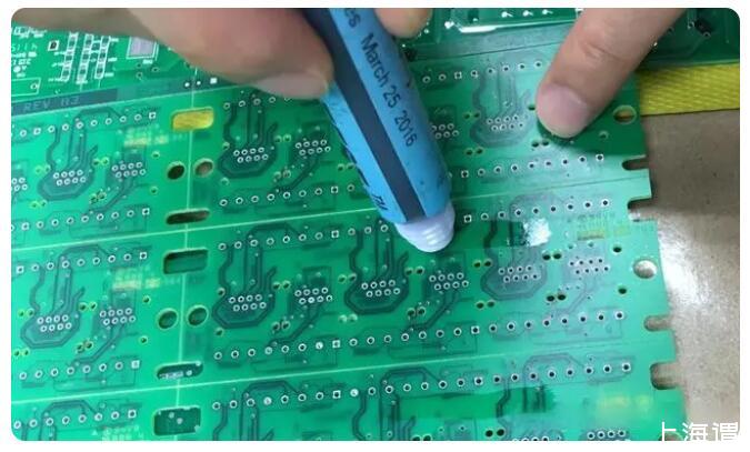測(cè)量PCB表面的張力主要是通過便攜式的測(cè)試筆,里面含有特定的張力測(cè)試液體,像是通常我們使用的大頭油性筆似的,測(cè)試時(shí)只要輕輕在需要測(cè)試的表面畫一條直線,待2-3秒鐘過后,觀察畫的直線是否附著均勻,沒有收縮成水珠狀,說明達(dá)到了該測(cè)試筆設(shè)定的張力,張力的單位為達(dá)因/厘米(dyne/cm),有時(shí)又稱測(cè)試筆為達(dá)因筆。具體測(cè)試筆品牌這里就不給做廣告了,這個(gè)測(cè)試在市面上也很容易買到。測(cè)試的方法也比較簡(jiǎn)單,為了確定張力的范圍,一般必須準(zhǔn)備至少2只測(cè)試,一般測(cè)試的張力區(qū)間在+/-2達(dá)因/厘米之間。