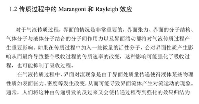 【摘要】:氣液傳質(zhì)在化工過程中普遍存在,研究氣液傳質(zhì)強(qiáng)化具有非常重要的意義。在氣液傳質(zhì)過程中,液體表面張力是控制界面?zhèn)髻|(zhì)的重要參數(shù),表面張力的變化會(huì)導(dǎo)致界面不穩(wěn)定,在一些條件下會(huì)引發(fā)近界面液體的對(duì)流現(xiàn)象,即Marangoni對(duì)流。界面對(duì)流的產(chǎn)生將對(duì)氣液傳質(zhì)過程造成顯著影響。本文通過添加低表面張力物質(zhì),研究了低表面張力物質(zhì)對(duì)氣液傳質(zhì)過程的影響,以期尋求強(qiáng)化氣液傳質(zhì)的有效手段。